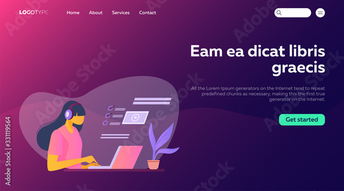 The watermark will not be included on Wall mural.: People using online apps set - professionals using computers and cellphones for work or chat - flat ve