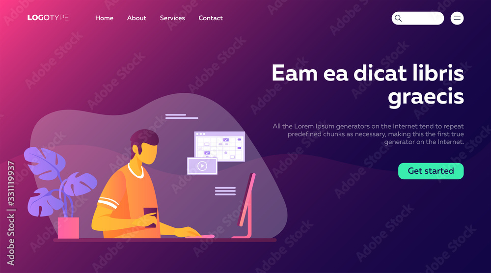 The watermark will not be included on Wall mural.: People using online apps set - professionals using computers and cellphones for work or chat - flat ve