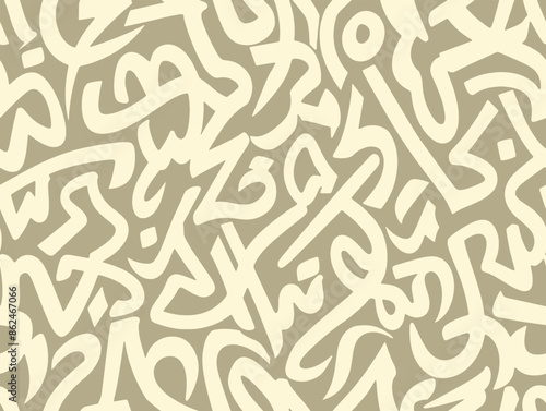 Perfectly seamless pattern, vector repeated abstract arab alphabet texture - unreal arabic calligraphWall mural