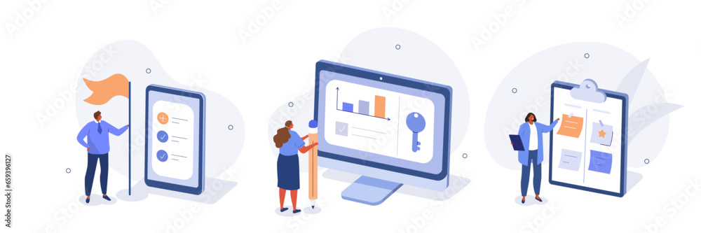 The watermark will not be included on Wall mural.: Performance management concept illustration - collections of characters setting goals and objectives