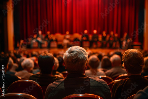 The watermark will not be included on Wall mural.: Performer standing in front of a crowded audience in a theater generative ai picture