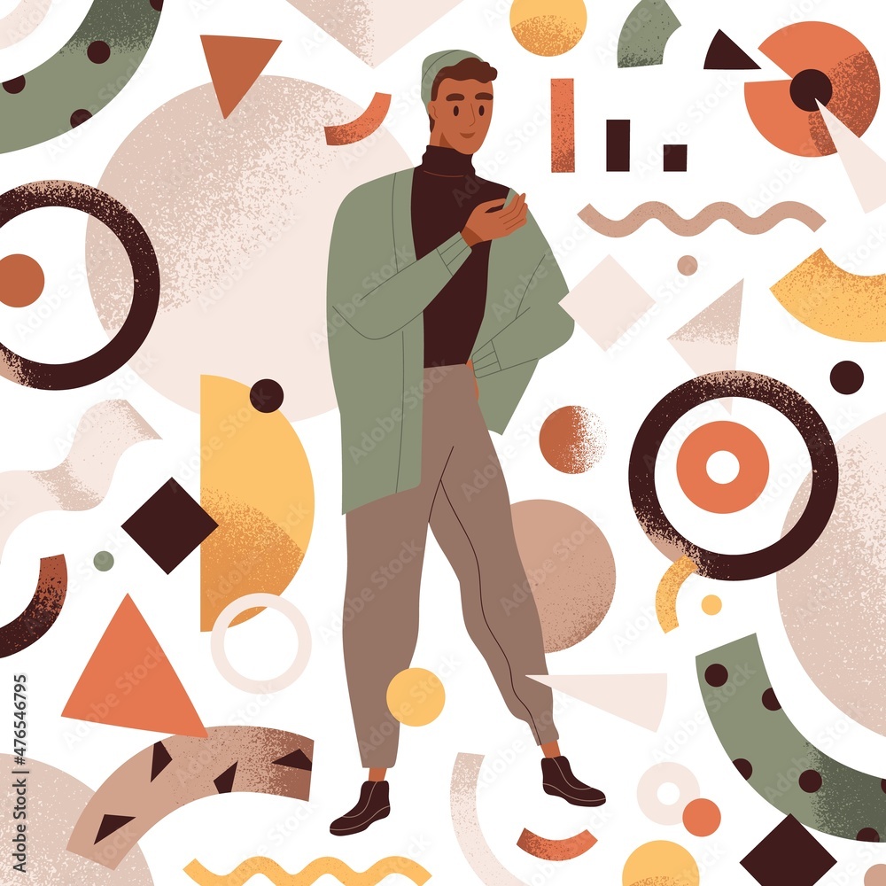 Wall mural person work with abstract data, business charts, analyzing information, creating system from chaos.