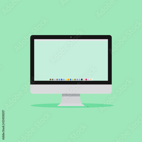 Wall mural personal computer flat design and isolated on a color background. mock-up template design, vector il