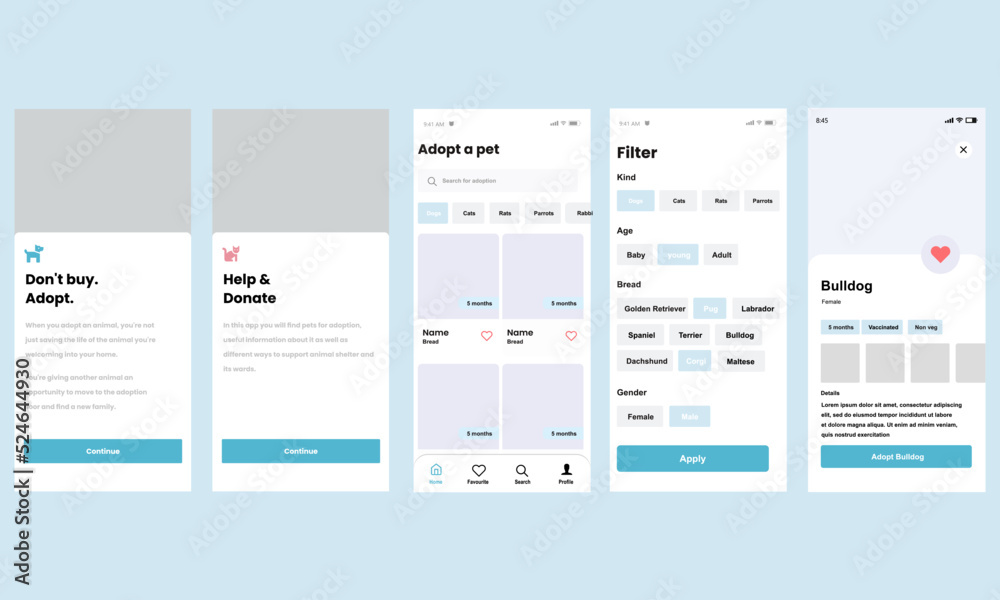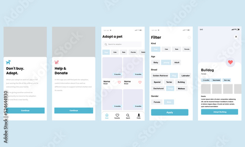 Wall mural pet adoption theme application screens, template layout for mobile and website mobile application. u - Wall murals Wall mural pet adoption theme application screens, template layout for mobile and website mobile application. u - Wall murals