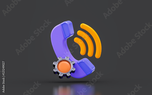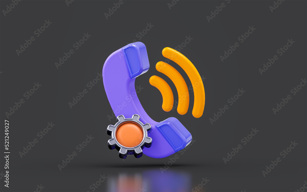 The watermark will not be included on Wall mural.: Phone call sign with gear wheel on dark background 3d render concept for network connection setting