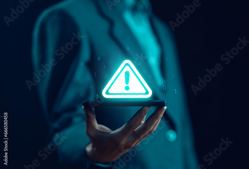Wall mural : Phone shows a warning sign of system failure and notification spam