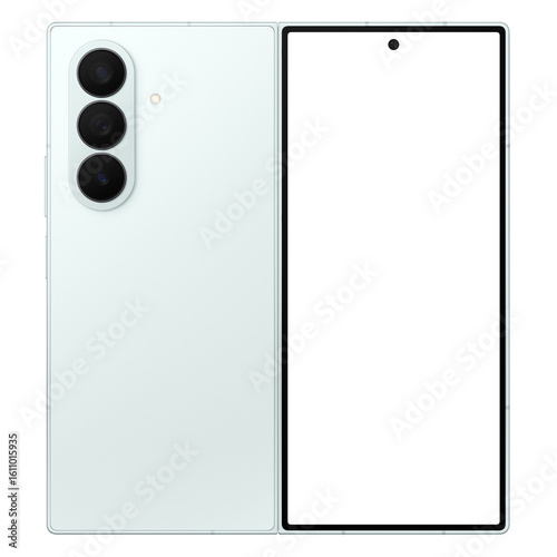 Wall mural photo of foldable smartphone similar to android device without background. mint color. template for  - Wall murals Wall mural photo of foldable smartphone similar to android device without background. mint color. template for - Wall murals