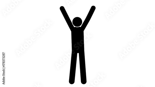 Wall mural : Pictogram man joyful gesture hands up - loop animation with included alpha channel -