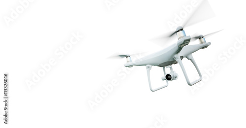 Picture matte generic design modern remote control air drone flying with action camera - isolated on Wall mural