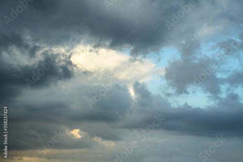 Wall mural picturesque clouds in the sky. window view of an airplane on a sunny gloomy day. stock photo backgro