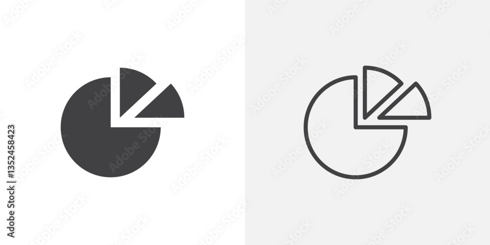 The watermark will not be included on Wall mural.: Pie chart icon vector set in black flat and line stroke style