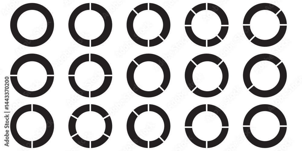 The watermark will not be included on Wall mural.: Pie charts diagrams - different color circles - donut and pie chart infographic elements set - colorful