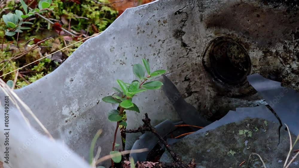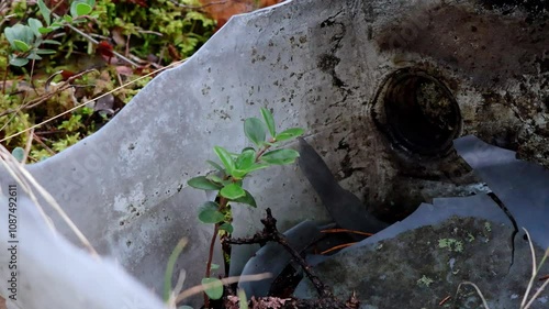 The watermark will not be included on Wall mural.: Pile of trash left in a forest clearing, illustrating the problem of littering and environmental pol