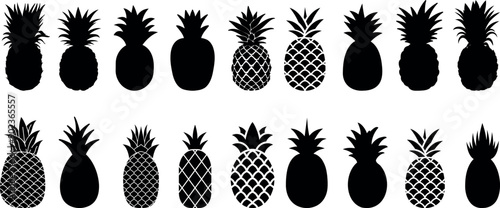Wall mural pineapple silhouette ananas vector illustration set, tropical fruit icons, black pineapple illustrat