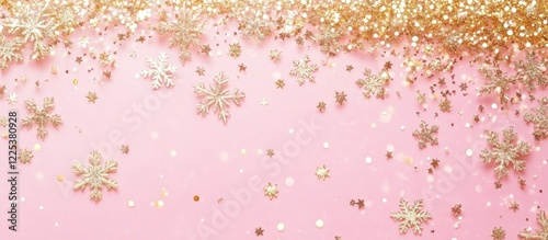 Wall mural pink abstract background featuring golden glitter and snowflakes with open copy space for text and d - Wall murals Wall mural pink abstract background featuring golden glitter and snowflakes with open copy space for text and d - Wall murals