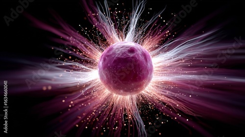Wall mural pink and white blob with a red center. the blob is surrounded by a lot of white and pink particles