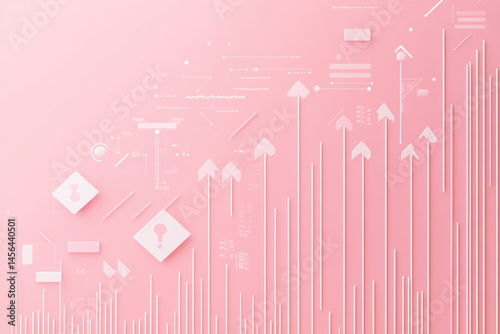 Wall mural pink background with upward arrows data and shapes