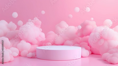 Pink catwalk with airy clouds or pink foam, an empty showcase for displaying goods - 3d visualizationWall mural
