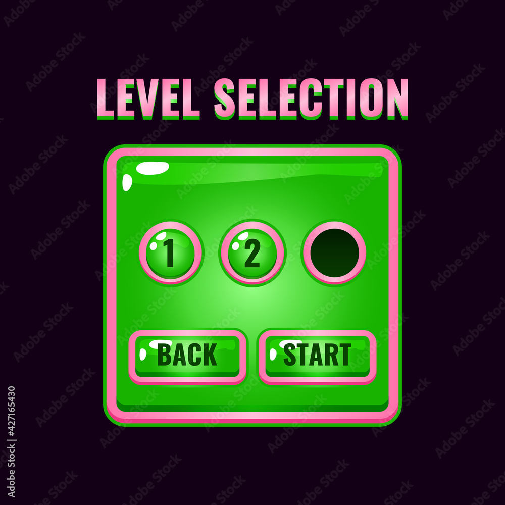 Wall mural pink jelly game ui level selection interface. perfect for 2d games vector illustration