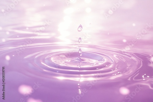 Wall mural : Pink liquid with falling drops creating ripples and bokeh effect -