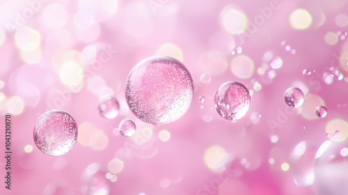 Pink shimmering soap bubbles floating with soft bokeh background generative aiWall mural
