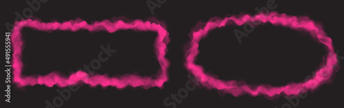 The watermark will not be included on Wall mural.: Pink smoke clouds frames isolated on black background - vector realistic set of rectangular and oval