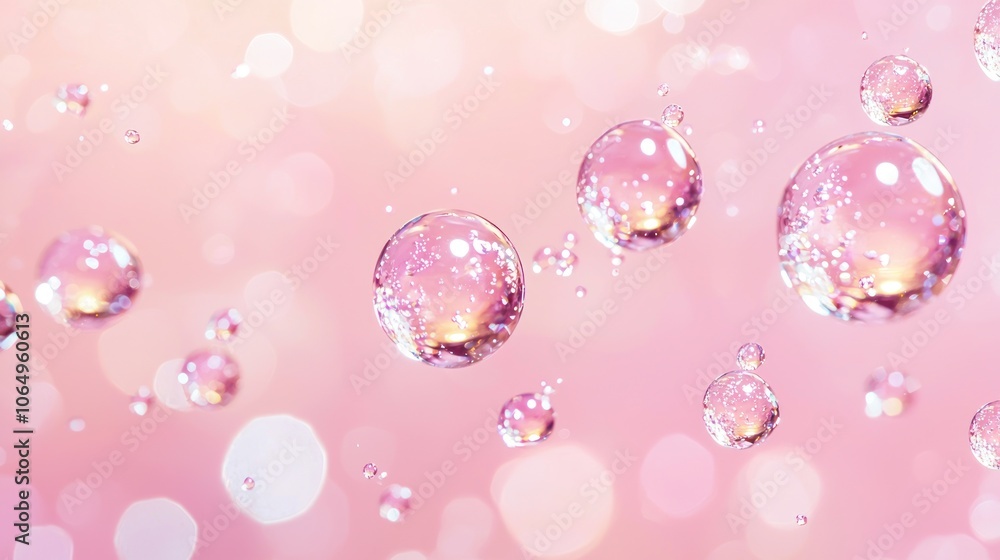 Wall mural pink transparent soap bubbles floating with bokeh light background generative ai - Wall murals Wall mural pink transparent soap bubbles floating with bokeh light background generative ai - Wall murals