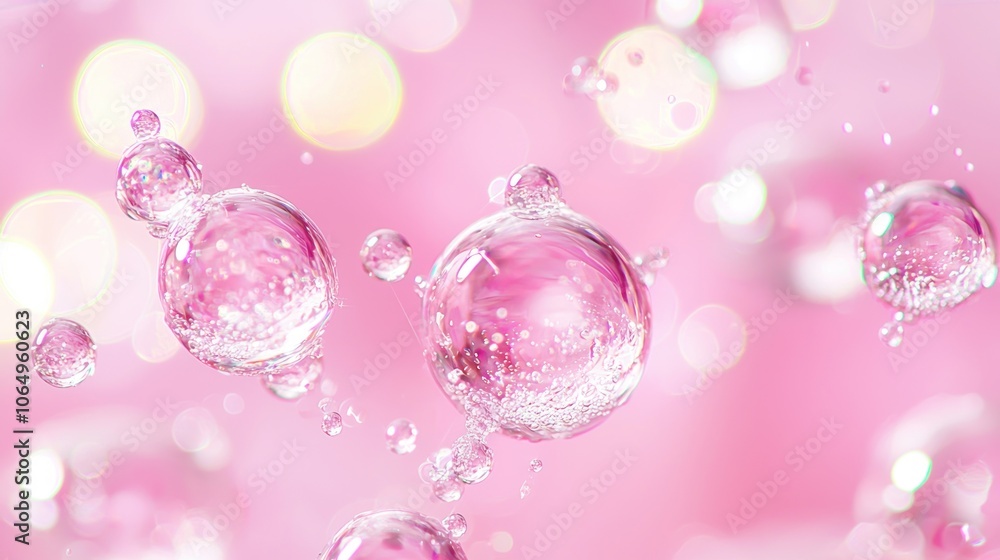 Wall mural pink transparent soap bubbles floating with bokeh light background generative ai - Wall murals Wall mural pink transparent soap bubbles floating with bokeh light background generative ai - Wall murals