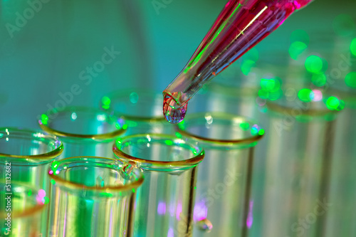 Wall mural pipette adding fluid to one of several test tubes - Wall murals Wall mural pipette adding fluid to one of several test tubes - Wall murals