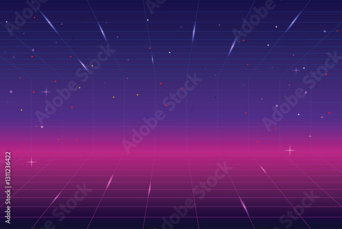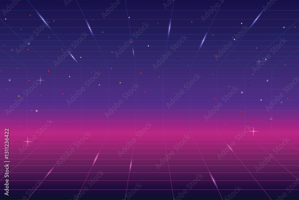 Wall mural : Pixel art background - 8 bit game - retro game - for game assets in vector illustrations - retro futurism
