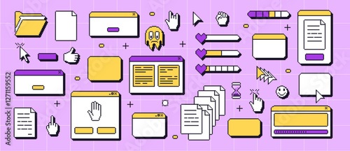 The watermark will not be included on Wall mural.: Pixel art retro windows interface - 8 bit browser and popup elements with pointers cursors, arrow and