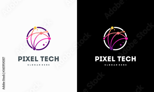 The watermark will not be included on Wall mural.: Pixel technology logo designs concept vector, network internet logo symbol, digital wire logo