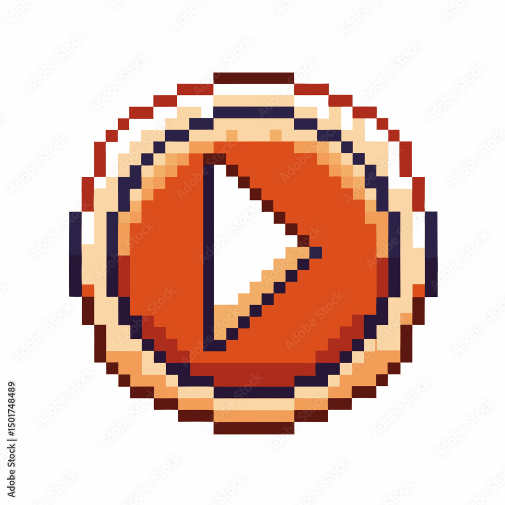 Wall mural pixelated red play button icon on circular background for digital media interface