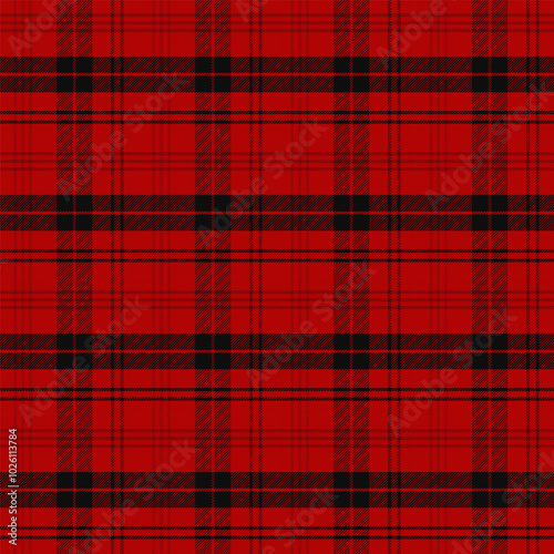 Wall mural plaid with twill weave repeat pattern.gingham seamless pattern in red and black.checkered tartan geo