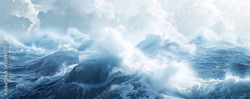 The watermark will not be included on Wall mural.: Plain bright water ocean wave background generative ai