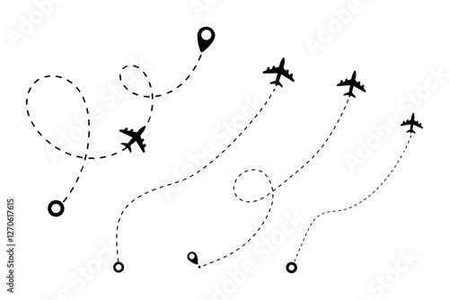 The watermark will not be included on Wall mural.: Plane with line and blank for text - continuous one line drawing illustration, airplane line path vec