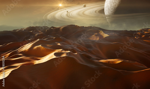 The watermark will not be included on Wall mural.: Planet and sand dunes in outer space