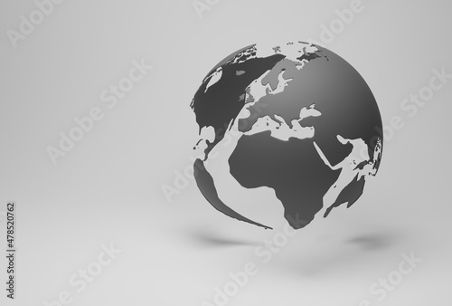 Wall mural planet earth, dark world map converted to globe, 3d object with shadows on light background - Wall murals Wall mural planet earth, dark world map converted to globe, 3d object with shadows on light background - Wall murals