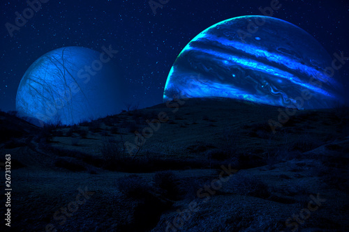 The watermark will not be included on Wall mural.: Planet earth, saturn and jupiter in a cosmic cloud - elements of this image furnished by nasa