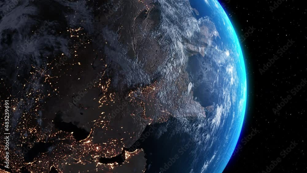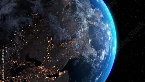 Wall mural : Planet earth 3d orbital animation with realistic geography surface and clouds atmosphere - spinning
