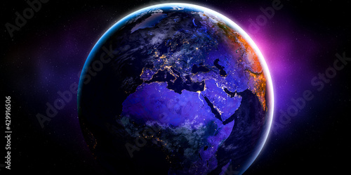 Wall mural planet earth globe view from space showing realistic earth surface and world map as in outer space p