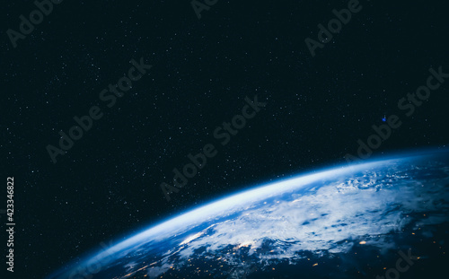 Wall mural planet earth globe view from space showing realistic earth surface and world map as in outer space p