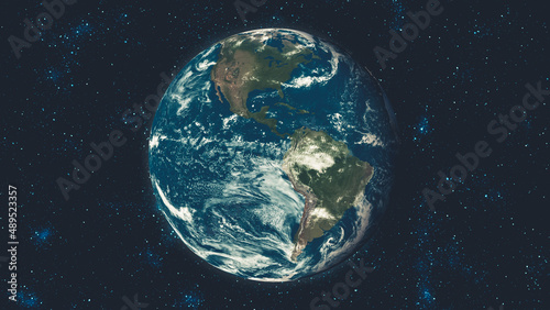 Wall mural planet earth globe view from spaceflight with realistic earth surface from space and world map as in