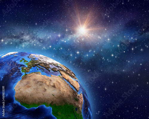 Wall mural planet earth in star field - Wall murals Wall mural planet earth in star field - Wall murals