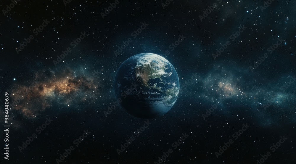 The watermark will not be included on Wall mural.: Planet earth is floating in space with a lot of stars around it - the planet is surrounded by a lot o
