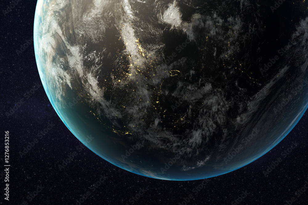 Wall mural : Planet earth of solar system at night - elements of this 3d rendered illustration where furnished by