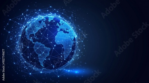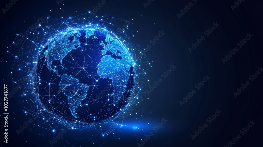 Wall mural planet earth rotating in space surrounded by network of connections