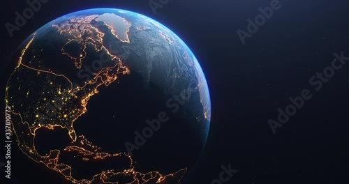 Wall mural planet earth view from space, countries borders highlighted, loop able repeatable animation perfect