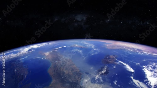 Planet earth view from space animation with milky way stars in background - contains public domain imWall mural