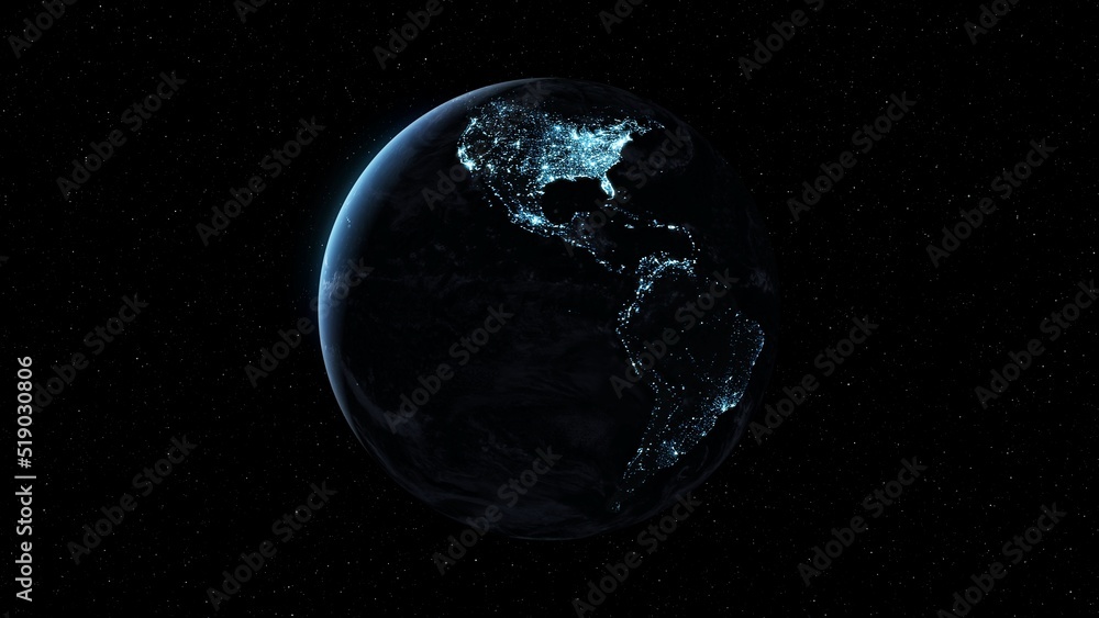 Wall mural planet earth with realistic geography surface and orbital 3d cloud atmosphere . outer space view of  - Wall murals Wall mural planet earth with realistic geography surface and orbital 3d cloud atmosphere . outer space view of - Wall murals